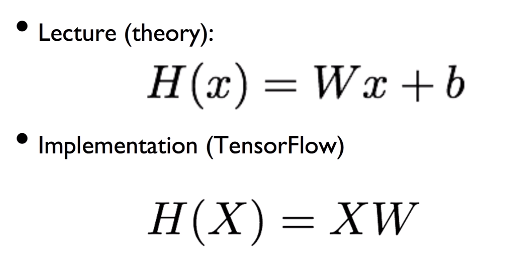 실제 구현에서는 WX가 아닌 XW 형태로 H(X)를 표현한다.