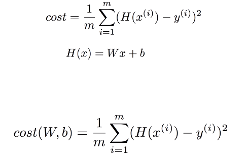 linear regression의 학습은 cost(W,b)를 최소화 시키는 W와 b의 값을 구하는 일이다!